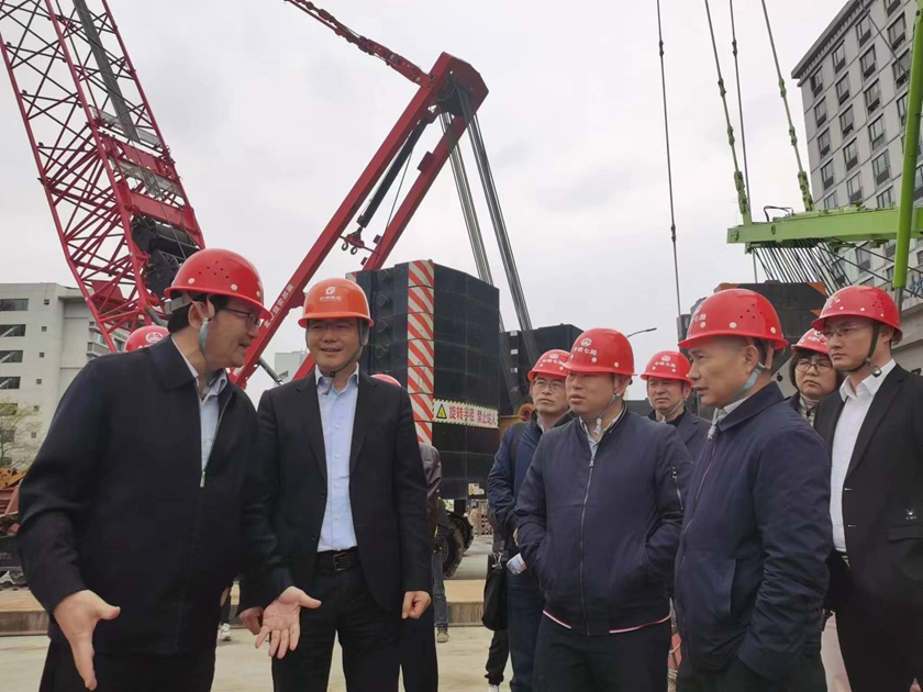 在环北天目项目2号工作井现场,黄昊明主任听取了关于项目概况、当前项目进展、存在困难以及下步工作计划的详细汇报,并对项目目前取得的阶段性成果表示肯定。黄昊明主任指出:环北天目工程对于助力亚运和提升城市环境品质具有重要意义,要在保证质量、安全的前提下,全力以赴推进项目建设,确保在亚运前按计划完成各项建设任务。