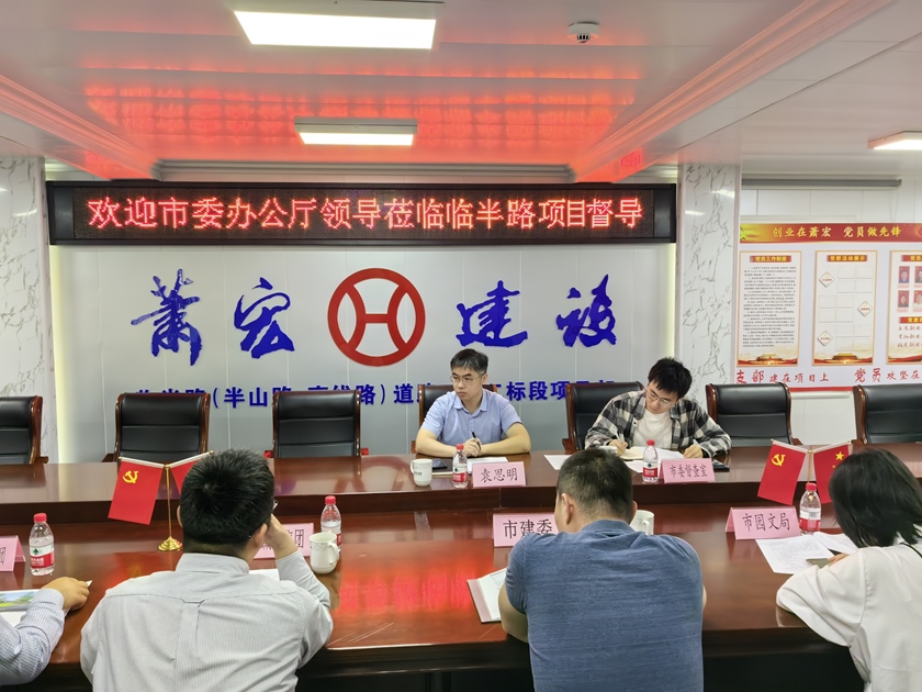 袁思明副主任一行踏勘了项目现场,对项目施工进度、现场管理、安全文明施工措施等方面进行实地调研。在随后召开的座谈会上,无码 a 片 傅翼部长围绕临半路项目整体建设情况及后续施工方案进行汇报,与会各部门针对亚运保通、景观绿化方案、建设时序等具体事项进行了探讨。