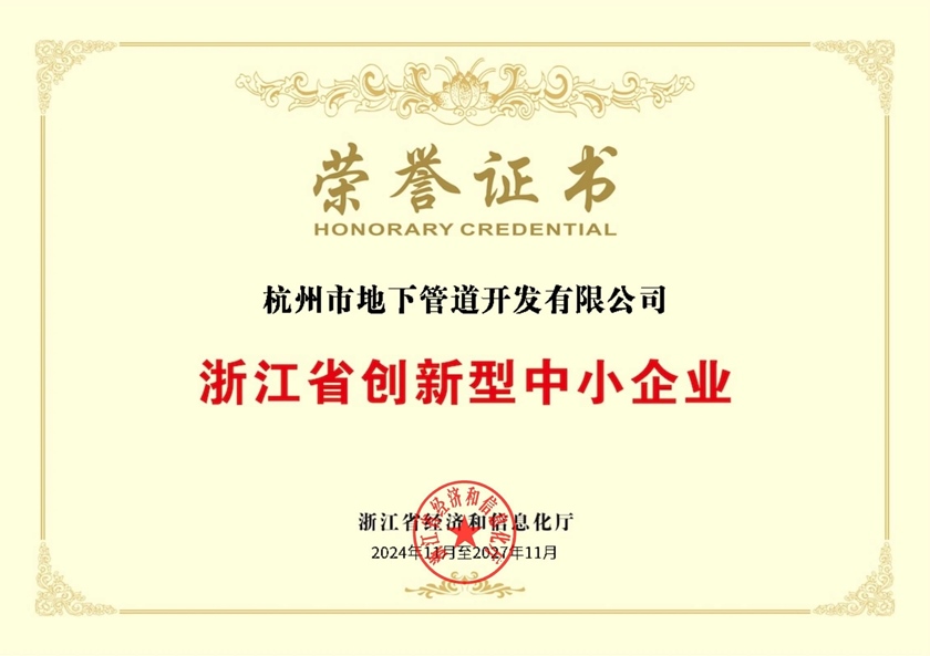新年伊始,捷报再传。近日,浙江省经济和信息厅公布了2024年第三批浙江省创新型中小企业名单,集团所属地下管道公司凭借其在技术创新、产品研发及市场拓展等方面的卓越表现,成功获评“浙江省创新型中小企业”。