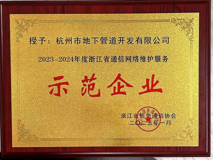 地下管道公司荣获“2023-2024年度浙江省通信网络维护服务示范企业”称号